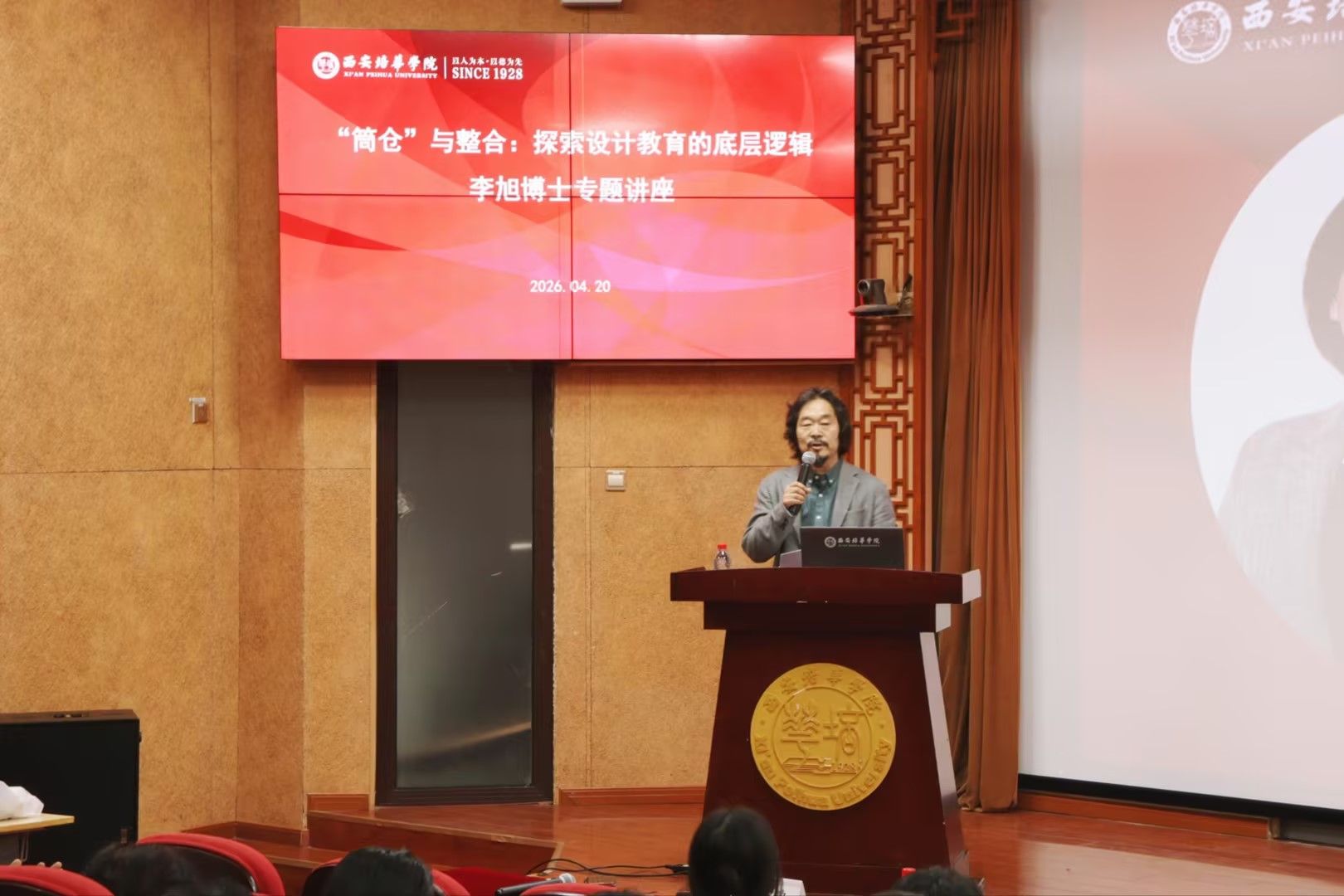 为深入推进设计教育改革,破解学科壁垒与组织困境,推动跨学科融合与产教协同创新,4月20日下午,西安培华学院特邀南方科技大学创新创意设计学院行政副院长李旭博士在国学大讲堂开展“‘筒仓’与整合:探索设计教育的底层逻辑”专题讲座。西安培华学院常务副校长韩蔚、传媒与设计学院院长詹秦川等教师代表参会,共同探讨设计教育转型与组织变革路径。讲座由副院长邵璐主持。
