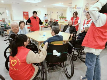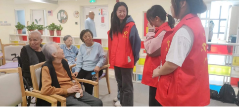 歌舞表演结束后,志愿者们纷纷上前同养老院的护工们一起,或推着轮椅或搀扶着老人们来到休息室,陪着爷爷奶奶聊家常,并聆听他们的革命经历和故事。爷爷奶奶们在分享自己的青春故事的同时,也不忘谆谆教诲志愿者们要珍惜青春的美好时光,紧跟党的领导,好好学习,锤炼过硬本领,不断投身为人民服务的事业中去。爷爷奶奶们不吝赞美之词,对志愿者来到养老院开展志愿服务活动的行为大为肯定,亲切地关心着志愿者的学习和生活,志愿者和老人们渐渐“打”成一片,聊得火热。
