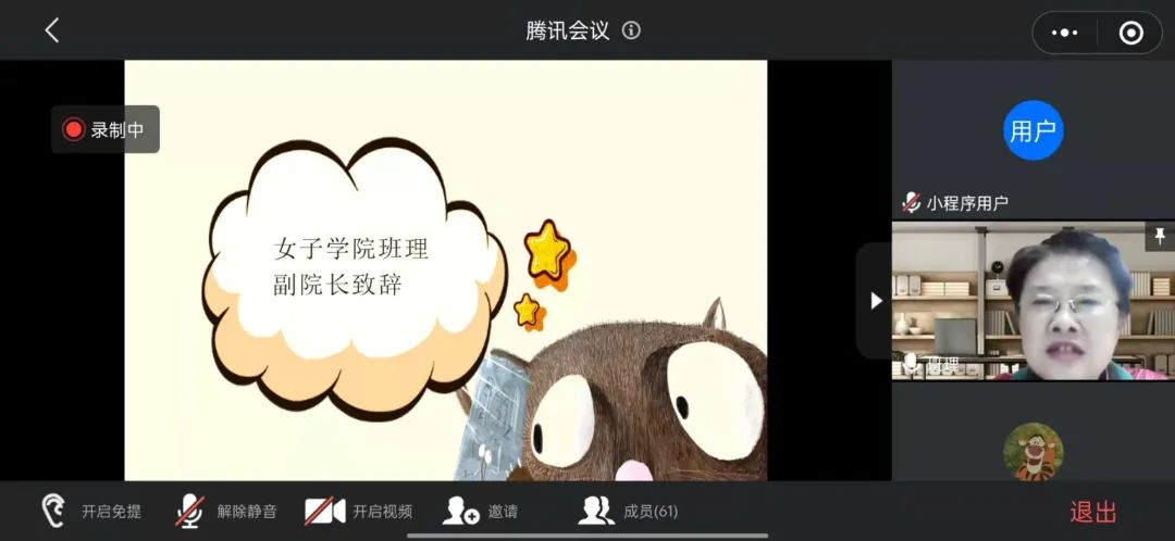 会议开始由女子学院副院长班理致辞,在对新加入到志愿服务队的同学表示欢迎后,班理副院长向志愿者们介绍了女子学院的巾帼志愿者们,在2020年疫情期间所展开的一系列“抗疫志愿服务中”所获得一系列成就。