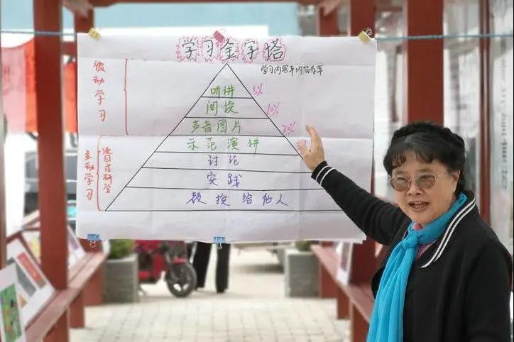 陕西省志愿者服务联合会会长、红凤协会荣誉会长班理,首先给小朋友介绍了“研学计划的学习金字塔”。表扬了小小志愿者学会了记录重要的信息,提升了记录的速度,了解了国家大事,她认为掌握科学的学习方法能激发学生们主动学习的动力,提升学习的留存率。