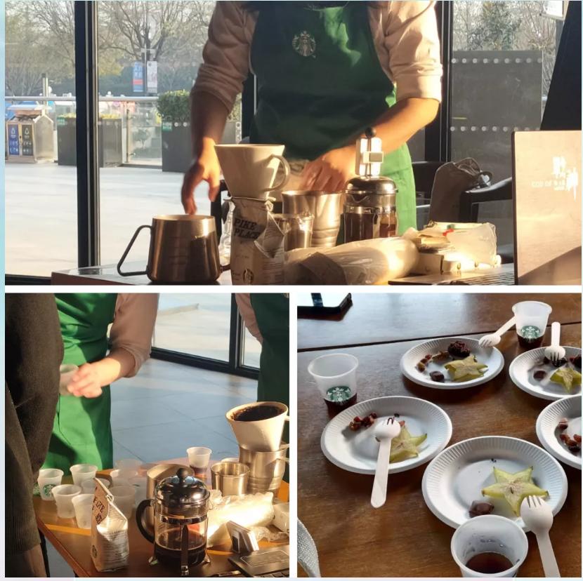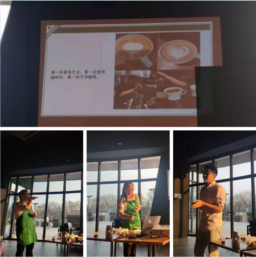 品尝完今日的咖啡后,高老师、孙老师和吕楠经理向学生们介绍了独特的星巴克文化以及他们同星巴克一起成长的心路历程。