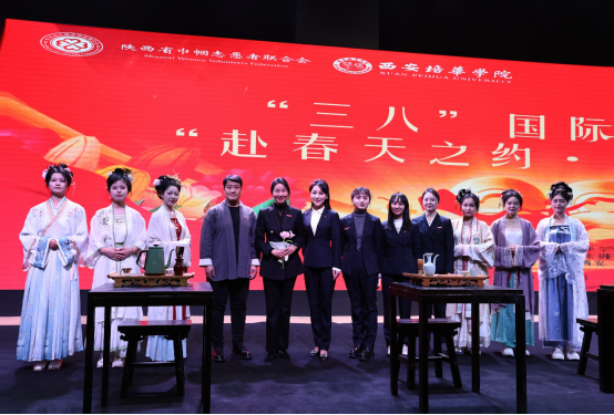 为庆祝第115个“三八”国际妇女节,3月7日下午两点,由陕西省巾帼志愿者联合会妇联主办,西安培华学院妇女联合会、西安培华学院女子学院联合承办的“赴春天之约·绽巾帼芳华”活动在汇知楼阳光厅举行。来自陕西省礼仪协会、陕西培合文化艺术研究院、秦始皇帝陵博物院、木兰书院、西安市旗袍艺术研究会等多家单位领导,西安培华学院理事长姜波,西安培华学院副校长、党委副书记、妇联主席姚文静,西安培华学院团委书记董莹,西安培华学院女子学院副院长李蒙及师生代表100余人参与此次活动。