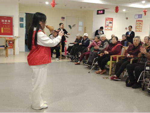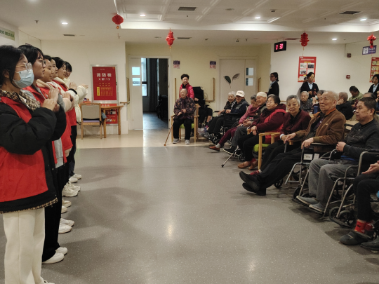 志愿者们一到达养老院,就受到了老人们的热烈欢迎。一个人经历童年、青年、壮年而后走向老年,或波澜壮阔、或跌宕起伏的经历让他们的皮肤皱纹遍布,眼珠变得昏黄,时间消磨了他们的精力,但他们丰富的阅历和成熟的经验早已给岁月交出一份满意的答卷。当志愿者们来到养老院时,老人们正在聊着家常,听到志愿者们要表演节目,老人们都表示热烈的欢迎,养老院的工作人员将行动不方便的老人扶到活动厅,所有人都翘首以盼,期待着志愿者们的表演。朗诵、唱歌、吹奏、舞蹈……节目一个接一个应接不暇,每一个节目结束,在场的人都送上了热烈的掌声表示喜欢,志愿者们的热情感染了老人们,在表演结束后一些老人还主动献唱,将热情延长,老人们都表示志愿者们的表演都很棒,这给了志愿者们极大的自信,这份鼓励是志愿服务最大的收获。