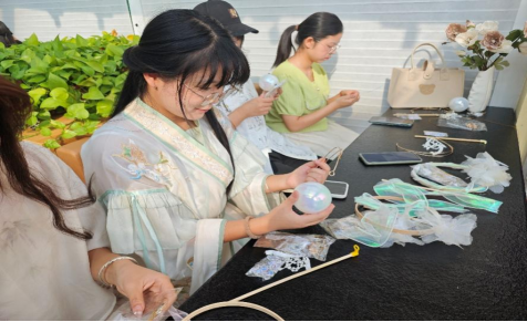 随后,同学们分成小组,开始动手制作花灯,她们充分发挥自己的创造力和动手能力,运用各种材料和工具,精心设计并制作出了一盏盏独具特色的花灯。同学们在制作过程中相互交流、相互帮助,分享制作过程中的小窍门,欢声笑语回荡在整个活动场地,现场洋溢着浓浓的中秋欢乐氛围。