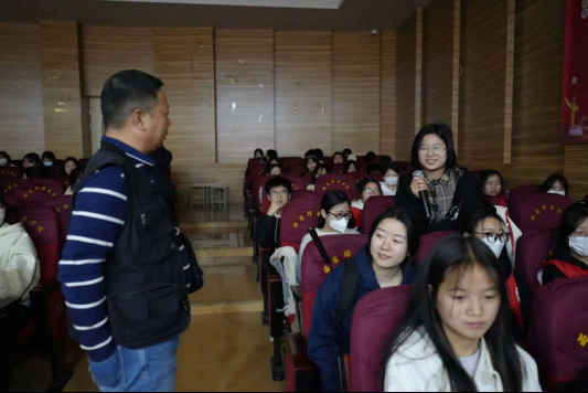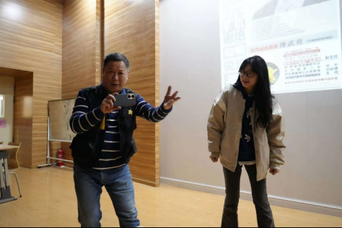 傅老师讲座幽默风趣,同学们积极互动。同学们自告奋勇上台协助傅老师,更好的为大家进行了演示。
