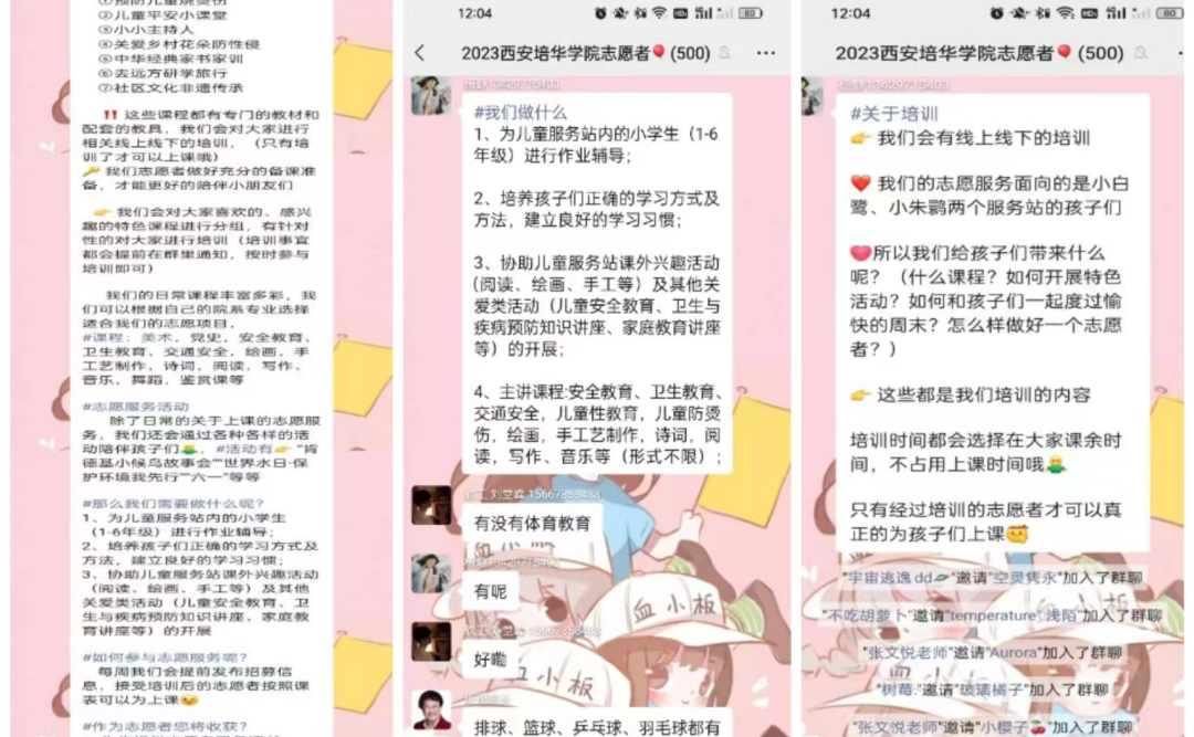 经过校友陈惜的指导下,我院芳华巾帼志愿服务社团在西安培华学院团委、学生服务中心大力支持下。各二级学院的所有辅导员在班会上介绍了志愿服务场所---由陕西省红凤工程志愿者协会建在长安区王曲街道办皇甫村小白鹭,王曲村小朱鹮儿童服务站的情况,并号召同学们积极参与,以志愿服务的行动,投入到第二个中华民族伟大复兴的战略任务--乡村振兴的伟大实践中去。西安培华学院女子学院创办的芳华巾帼志愿服务管理团队,负责这次招募的具体工作,她们精心设计制作海报,并张贴在各个公寓门口的宣传墙上,扩大学雷锋做志愿服务的影响力。