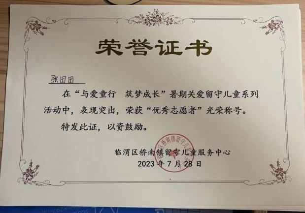 自2023年加入芳华巾帼志愿服务队以来,忠实践行奉献,友爱,互助,提高的志愿者精神,勉励好学,爱岗敬业。积极参加每次志愿者培训,注重个人本事,进取向上,热忱的投身志愿活动中。立足本职工作,热心公益事业,每周都会到皇甫村“小白鹭儿童服务站”或王曲村的“小朱鹮儿童服务站”,为孩子们讲授特色课程。在“雷锋精神代代传,志愿服务我争先”活动和儿童服务站“五月生日会”中担任志愿者主持人。作为特色课程“小小主持人”的负责人,同时也担任了“小小主持人”志愿者培训中主持人。积极热心志愿事业,富有敬业和奉献精神。