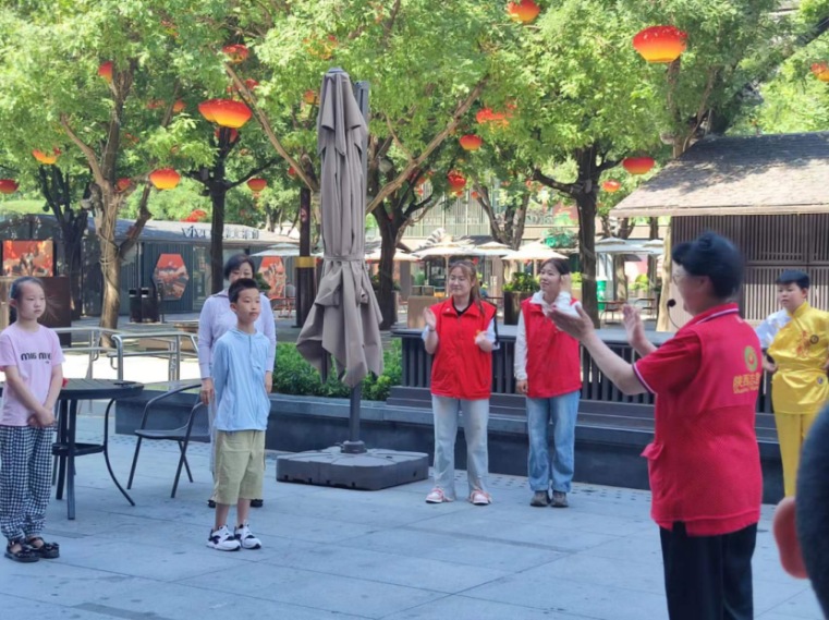 破冰活动在大唐不夜城的街区开展。儿童们围成一个圈,轮流开始了自我介绍,在此项活动里,六年级的毕业生们,认识了和自己同样处在即将步入初中阶段的新同学,这下大家都有了同样的话题,话匣子一下就打开了……