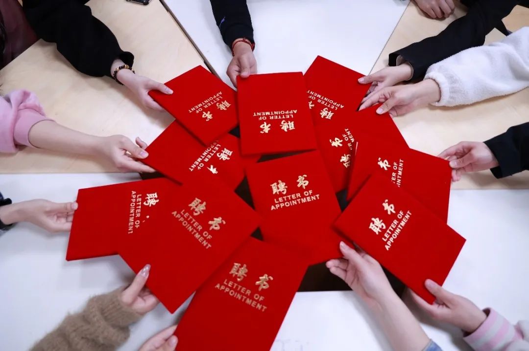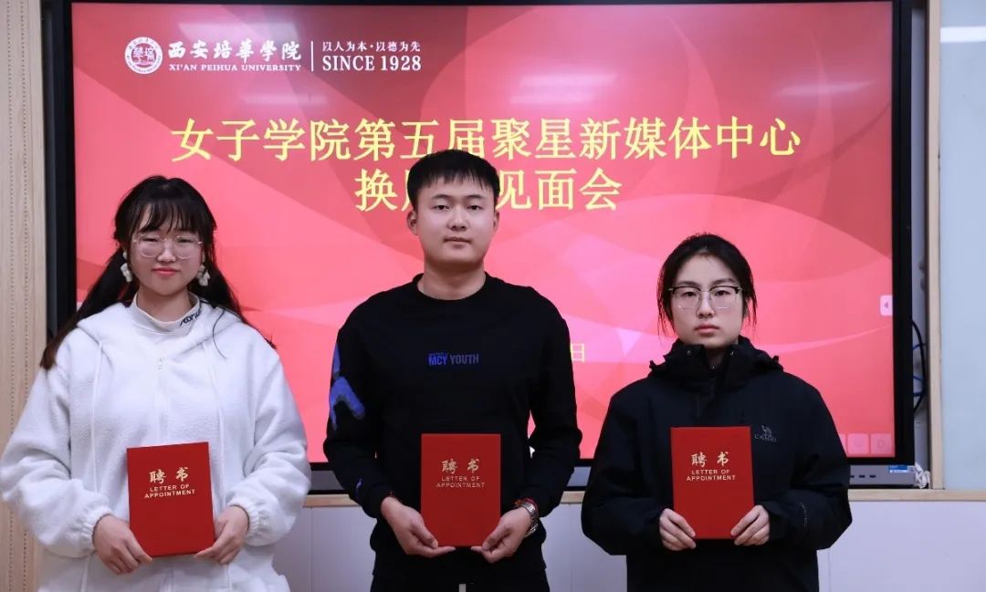 此次换届大会,不但让聚星新媒体的全体成员聚在一起,有了“新血液”的加入,也为社团带来了新的活力。为了让每位成员都能感到归属感,西安培华学院女子学院女生会杨静主席为成员们一一颁发了聘书,最后大家都拿到了象征自己身份的红色聘书。