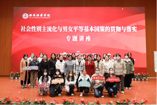 陕西省政府妇女儿童工作委员会办公室常务副主任薛燕敏出席此次活动并致辞,薛副主任在致词中谈到,我们党和国家历来高度重视妇女工作和妇女的全面发展,将男女平等作为一项基本国策大力推进,党的二十大第三次强调要“坚持男女平等基本国策,保障妇女儿童合法权益”。今年1月1日正式施行的新修订的我国妇女权益保障法里明确提出“国家将男女平等基本国策纳入国民教育体系,开展宣传教育,增强全社会的男女平等意识,培育尊重和关爱妇女的社会风尚。同时,也希望西安培华学院能一如既往地高度重视大学生社会主义核心价值观的培养,从促进大学生全面发展的角度,不断强化性别融合课程建设,提高学生社会性别观念,让更多的同学们认识和理解到男女平等基本国策的深刻内涵。通过举办形式多样的主题活动,积极宣传先进的性别文化,带动更多的师生为实现性别平等的美好愿景,加入到推进性别平等的行动中来。