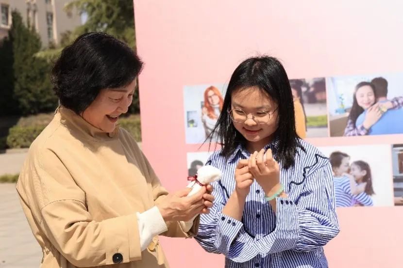 讲话结束后,企业家和同学们积极参加“拥抱性别平等”有奖趣味问答, 参与者从答题箱里随机抽取题目,回答正确就能获得小礼品。“什么是新时代四有女性?”“有理想、有品德、有诚信、有作为” “相比女性,一生中男性一定不会有的一个生理时期是什么?一般这个时期持续多久?”“孕产期,一般是十个月,即42周左右”……大家踊跃参与问答,和周围人拥抱、拍照留念。活动在一片欢声笑语中圆满结束。