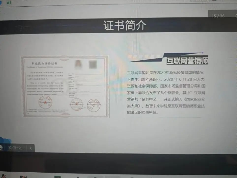 数智未来学院校长陈伟介绍了学院的发展情况,并对互联网营销师这一职业概念和和目前电商的市场环境进行了分析,表示陕西省旅游摄影协会手机摄影分会和数智未来学院均愿意为汉阴县巾帼电商的培训工作贡献力量。