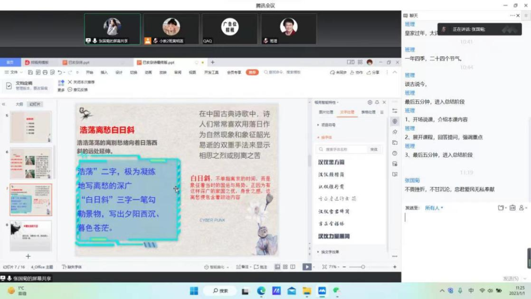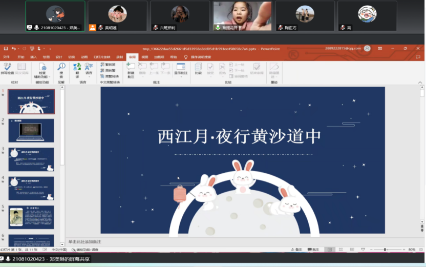张国菊同学带来清代著名诗人龚自珍《己亥杂诗》的介绍,也有刘梦如同学对文言文的见解与感悟,还有张濮霖同学对《江雪(柳宗元)》这首诗的描绘与感情的书写,当然还有高一晨同学对自己印象中的西安,进行了丰富的介绍以及自己对西安独特的感受。