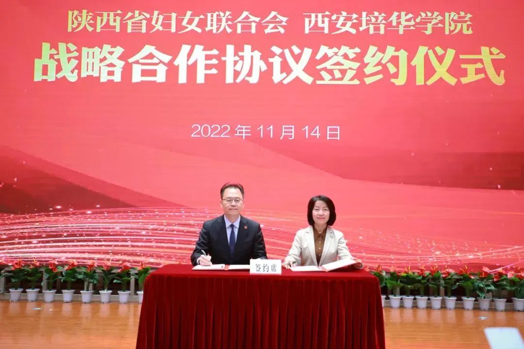 会上,省妇联与西安培华学院签署第二轮五年战略合作协议,为新成立的西安培华学院妇联揭牌。