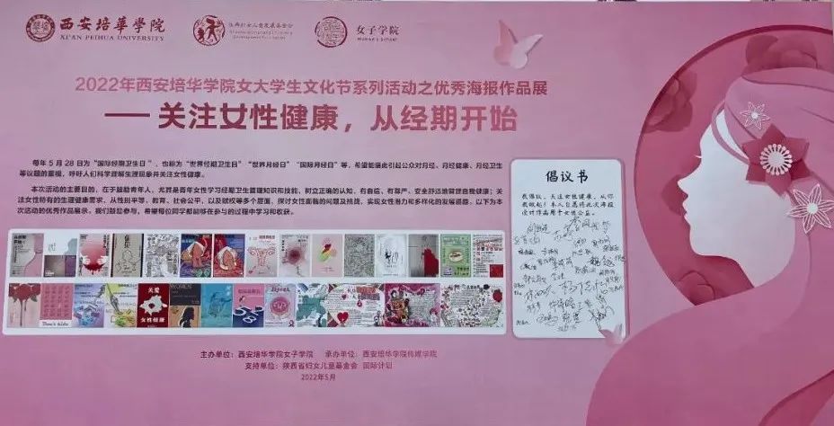 为迎接第9个“国际经期卫生日”的到来,西安培华学院女子学院与陕西妇女儿童发展基金会、国际计划组织联合举办“关注女性健康”海报设计大赛,面向全校学生征稿。