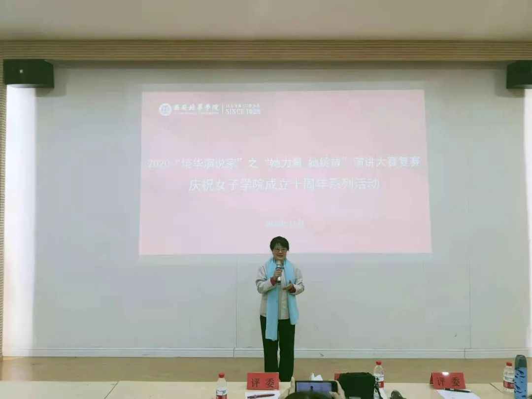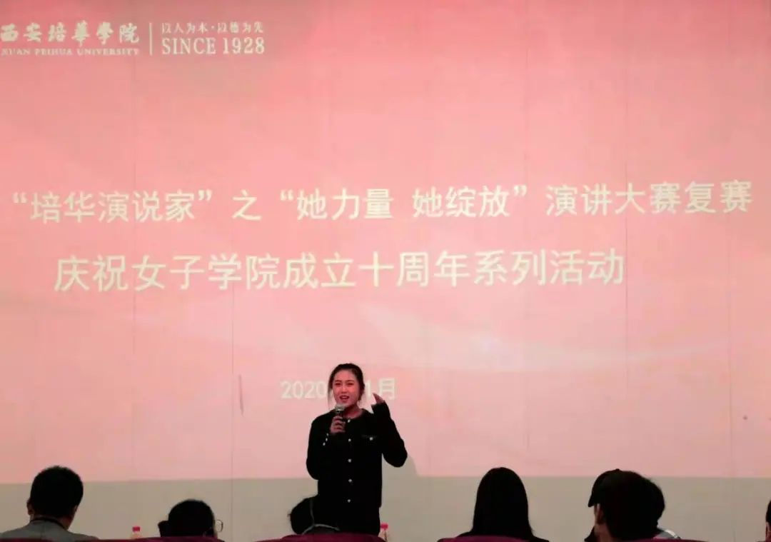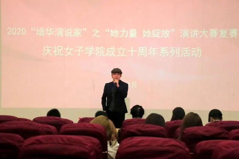 班理副院长回顾了女子学院十年的发展经过,赞扬女性的力量。指出演讲是一个人素质的综合体现,也对个人的发展有益,希望每一个培华学子都可以具备这一能力,从而提高自身的综合技能。”