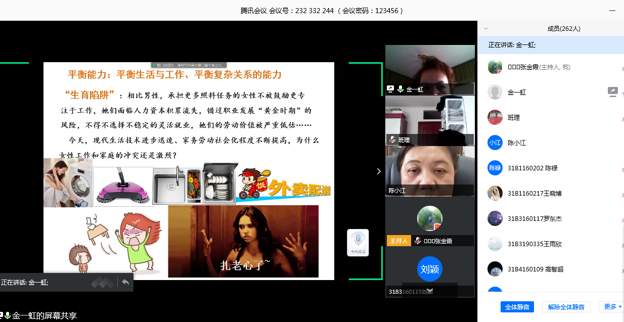 讲座中,金教授回应了:何为女性领导力?谁需要提升女性领导能力?以及为什么女性更需要领导力建设三个问题展开论述和分享。