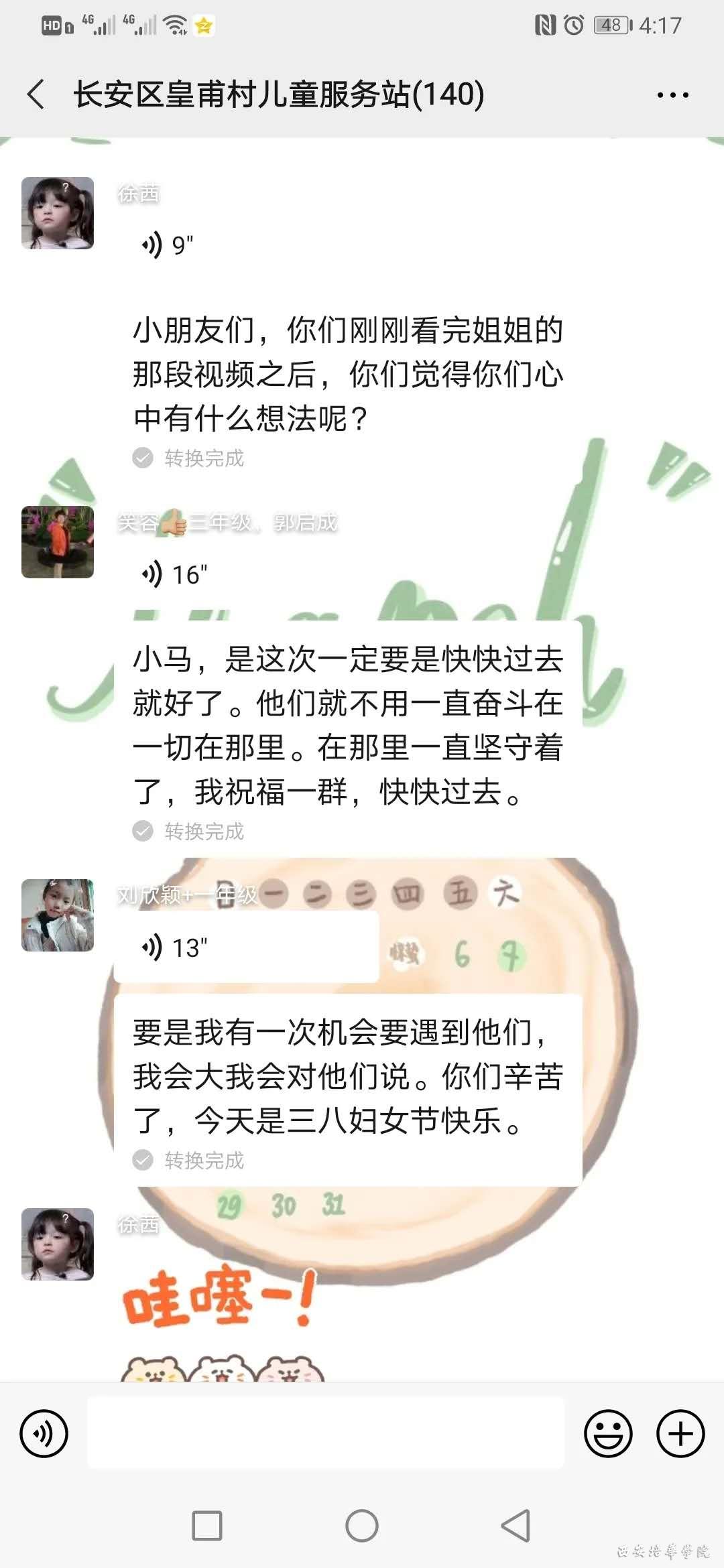 当然了,我们的志愿者们也一直坚守于他们的岗位上。让我们来看看吧。本次活动首先由皇甫村儿童服务站的主持人王依雯,先介绍了到场的嘉宾:长安区区委宣传部副部长、区文明办主任赵晓薇志愿者,长安区文明办副主任杨兴军志愿者,王曲街道办副主任崔卫婷、皇甫村妇联主席刘敏,还有红凤工程志愿者协会会长夏雨、小白鹭儿童服务站站长张会婷、小朱鹮儿童服务站站长王敏、西安培华学院女子学院张金霞老师,以及西安培华学院女子学院志愿者。