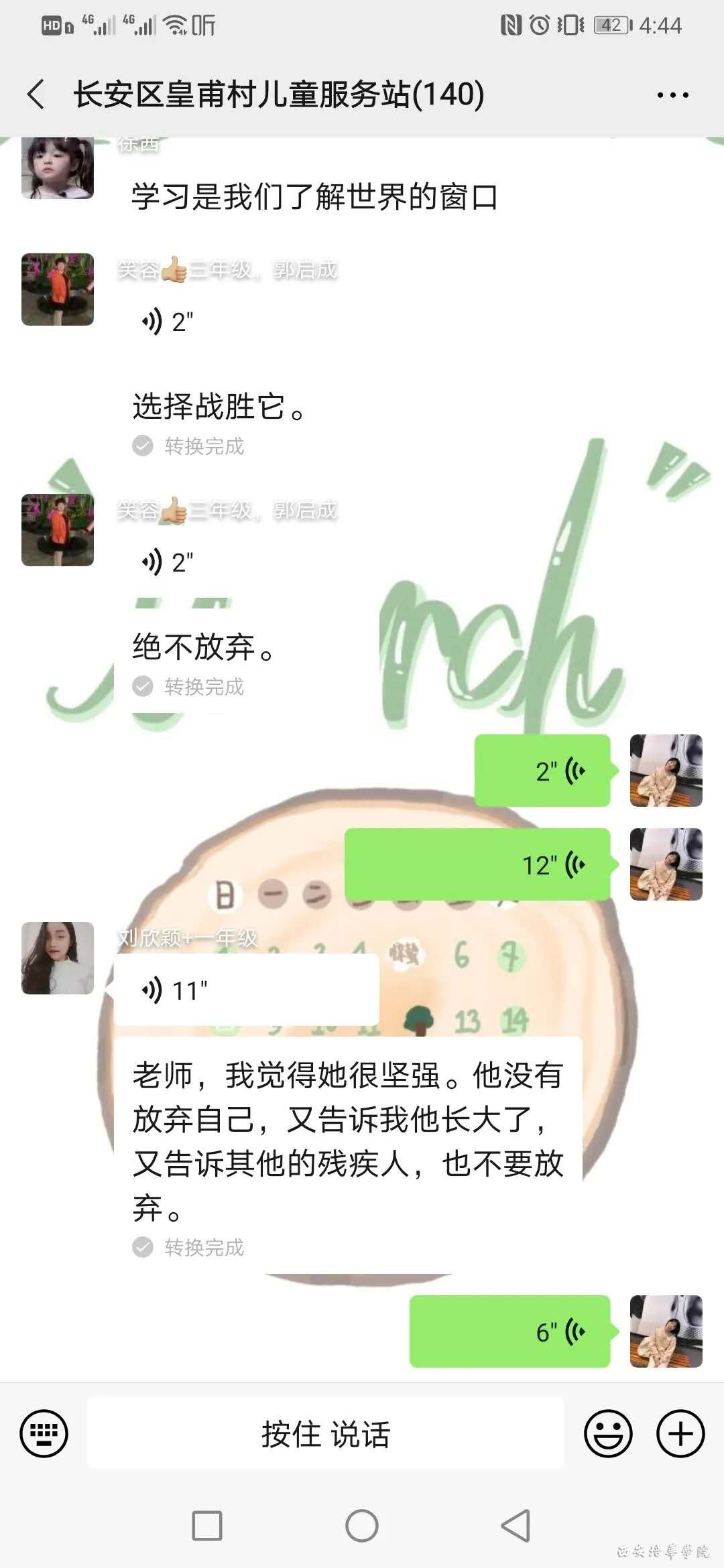 首先罗望望姐姐介绍了海伦凯勒的生平资料,让大家能够有所了解。故事大致讲的是海伦在一岁半的时候生了一场大病,从此失去了听力,视力,还有说话的能力,这对她的打击非常大。但是在她七岁那年,她的家庭教师莎莉文老师的到来,改变了海伦的一生。她用耐心和爱去感化海伦,她让海伦用心去感受自然。海伦也特别努力的学习,最后在她们共同的努力下,海伦终于学会了说话,并且还以优异的成绩从名校毕业,并且在她长大后建立了慈善基金会,去到美国各地帮助那些有需要的人。莎莉文老师把爱带给了海伦,海伦把爱洒满了大地。小朋友们积极发,从这个故事中小朋友谈自己学到了要善良,要乐于助人,无论遇到什么难题都绝不放弃,要勇于战胜困难,一直学习进步。并且要把志愿者姐姐们的爱带给身边的人。同时他们还为群里的志愿者们送来了三八妇女节的祝福,特别的温暖与贴心。