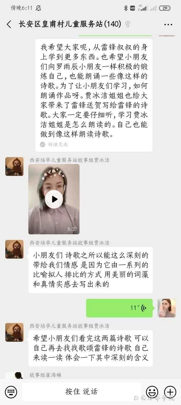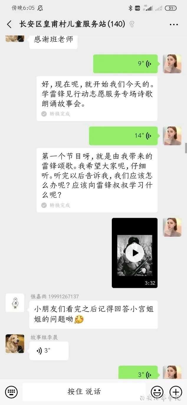 2020年3月5日是第57个“学雷锋纪念日”,也是第21个“中国青年志愿者服务日”。当天下午,西安培华学院女子学院志愿服务队又一次借助互联网走进长安区新时代文明实践活动中心-皇甫村小白鹭儿童服务站,在这个难忘的日子里,为了让小朋友们懂得雷锋精神的重要性,班理老师带领西安培华学院女子学院志愿服务队展开了一场“学雷锋,见行动”的志愿服务专题诗歌朗诵故事会。