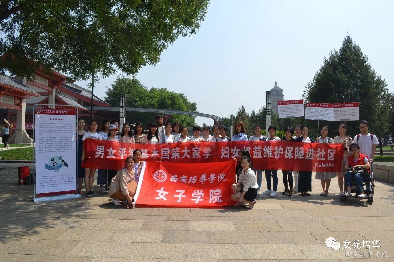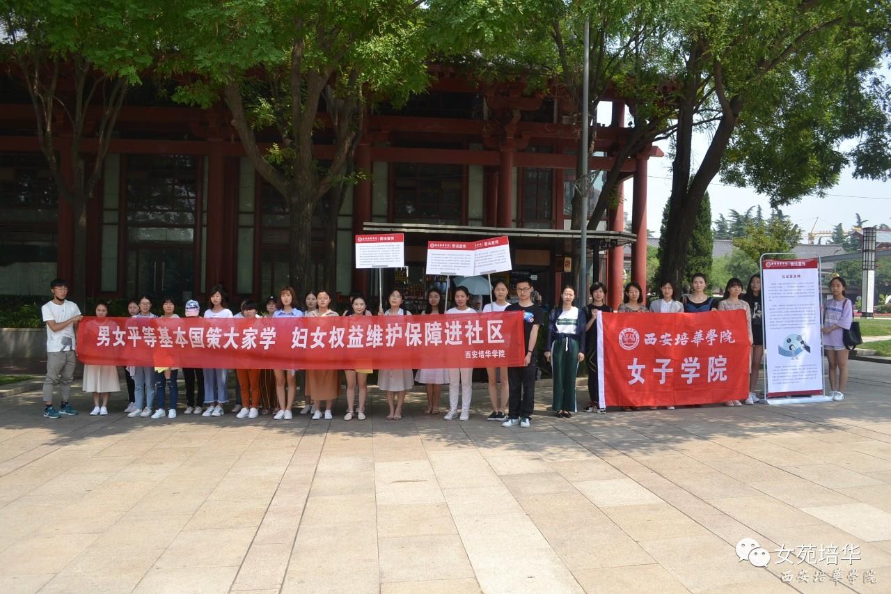 5月16日,为响应国家”男女平等基本国策“的号召,进一步深化基层群众对男女平等基本国策的认识,提升群众生活中的性别意识和社会和谐基础,西安培华学院女子学院在西安市大雁塔广场举办了“男女平等基本国策大家学,妇女权益维护保障进社区”的宣传活动。