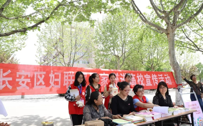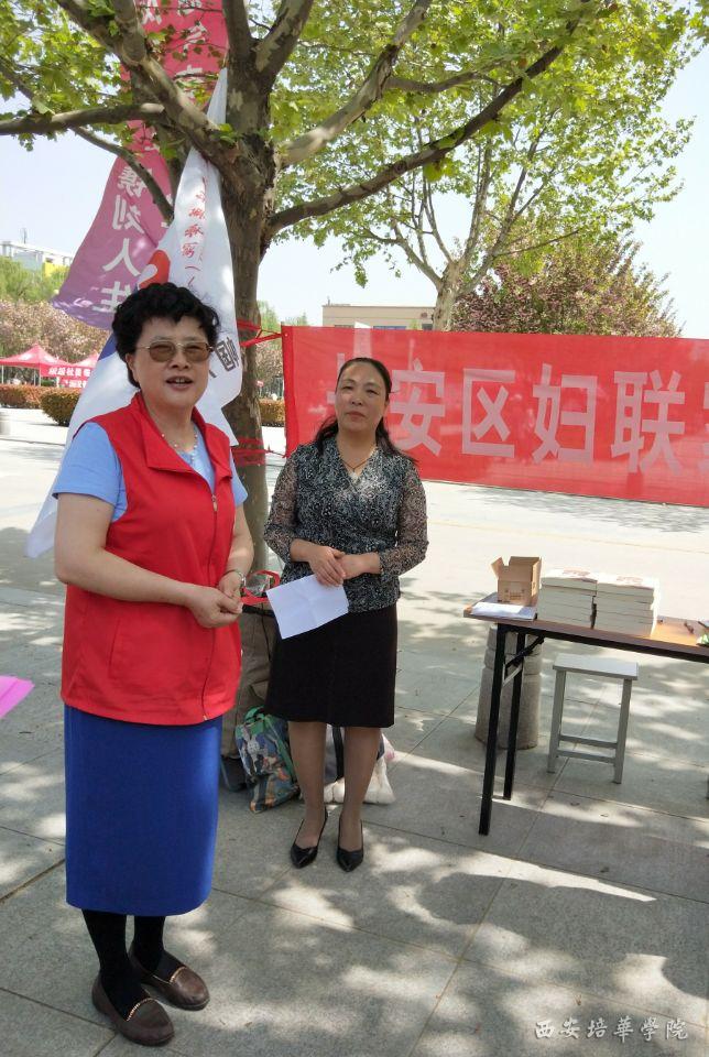 4月3日中午,长安区妇联、西安培华学院人文学院、女子学院以及校三秦巾帼志愿服务团联合举办的“长安区妇联法制、家风家训进高校”宣传活动在我校图书馆门前举行。