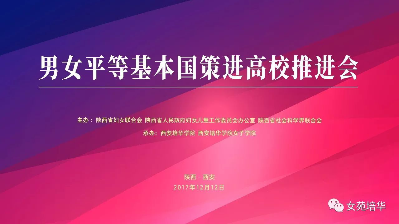 12月12日,由陕西省妇联、陕西省政府妇女儿童工作委员会办公室、陕西省社会科学界联合主办,西安培华学院、女子学院承办的“男女平等基本国策进高校推进会”在我校维之图书馆报告厅举行。出席此次推进会的领导有:陕西省人民政府妇女儿童工作委员会办公室副主任、省妇联副主席党洁,省委宣传部副巡视员雎厉军,西安培华学院校长王拴才、副校长李映方、刘越莲、姚文静。陕西省多所高校、社科院所妇女/性别研究基地的负责人、专家、学者和社会组织的负责人、部分高校相关部门的领导也出席了推进会。我校女子学院前副院长金沙曼、女子学院副院长班理、女子学院常务副院长刘利侠,以及现场的教师与学生共500余人与会。推进会在省妇儿工委办公室副主任、省妇联副主席党洁的主持下拉开帷幕。