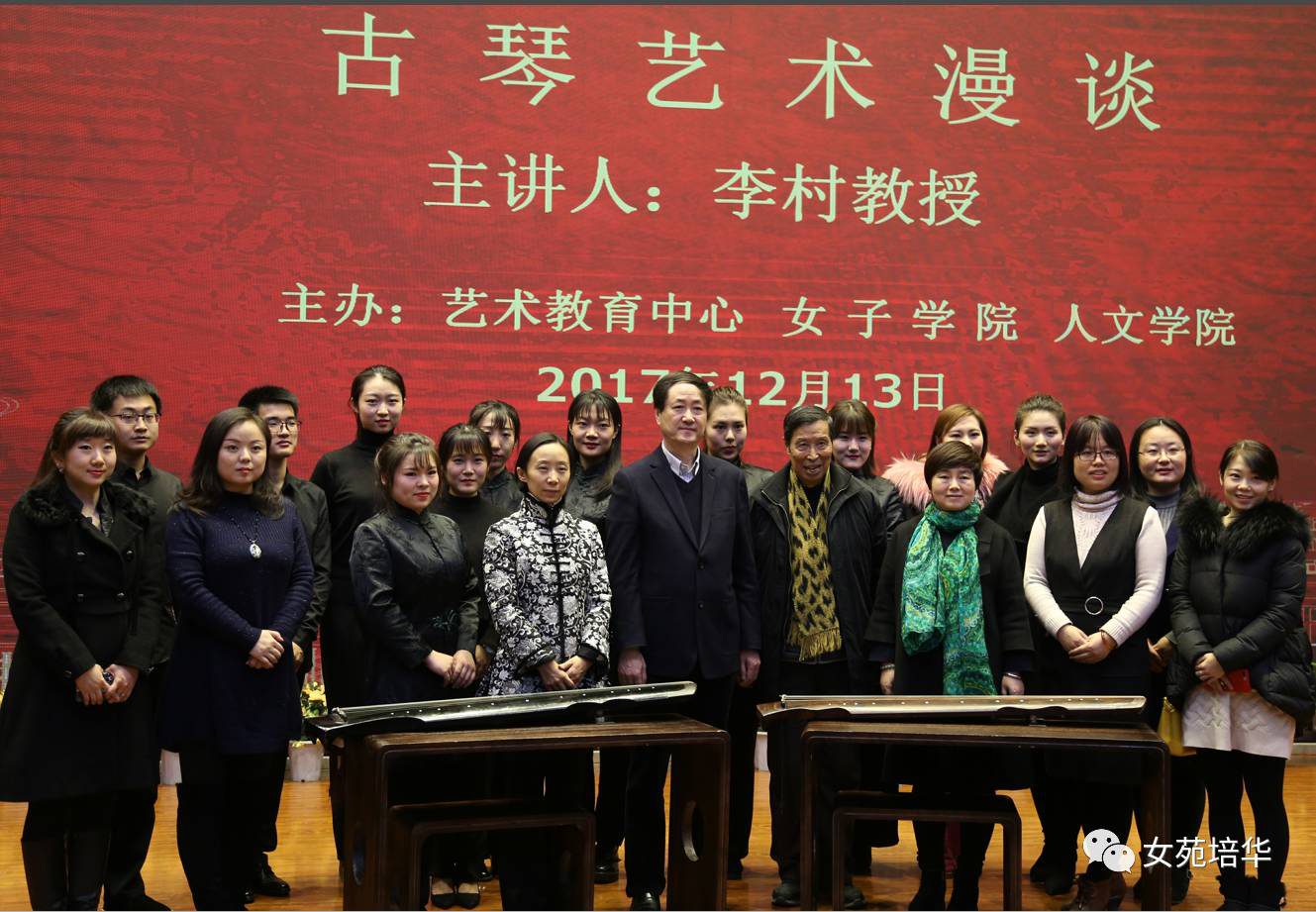 在活动的最后,各位到场的领导与李村教授及其学生们进行合影留念,至此,人文与艺术讲堂——古琴艺术漫谈顺利落下帷幕。