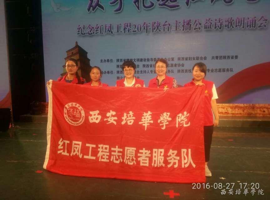 我是一名大学生同样是一名青年志愿者,很荣幸能够代表西安培华学院女子学院,参加8月27日”纪念红凤工程20周年诗歌朗诵会”.我怀着一颗真诚的心,为他人服务的红凤精神为这次活动服务。活动中我感受到了”红凤人”的热情,他们用真诚的微笑和细致的服务来帮助每个需要帮助的人,践行为他人尽一份微薄之力,创造出美好未来。团结在一起 ,心连心,手拉手,用真诚的心,服务他人。我认为自己能够参加红凤的活动很开心,同时也了解到大学生青年志愿者是一个特殊的团体,它代表的是着一个乐于奉献,用心服务的“学雷锋”的团体。我们要把志愿者的精神弘扬继承下去。