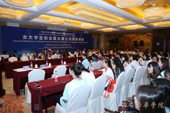 为深入推动女性创业就业教育的发展,促进女大学生在互联网时代创业就业意识和能力的提升,在中国举办G20峰会和全国妇联承办W20期间,在全国妇联及中国繁荣基金的支持与指导下,召开女大学生创业就业能力提升研讨会,受中华女子学院邀请,在北京西藏大厦举办为期两天的女大学生创业就业能力提升研修班,女子学院院长助理房宁、女子学院教学干事蒋茜雯和学生李潇静、刘思代表女子学院代表我校参加此次研讨会的培训。英国大使馆经济处二十国集团事务一等秘书威丹尼先生,全国妇联国际部副部长卢亚民,中华女子学院党委书记李明舜出席研修班开幕式并致辞。中华女子学院副院长宋胜菊主持开幕式。英国大使馆、教育部、全国妇联国际部、妇女发展部、中国发展研究基金会、中国妇女期刊社等其他专家及嘉宾参加了会议。