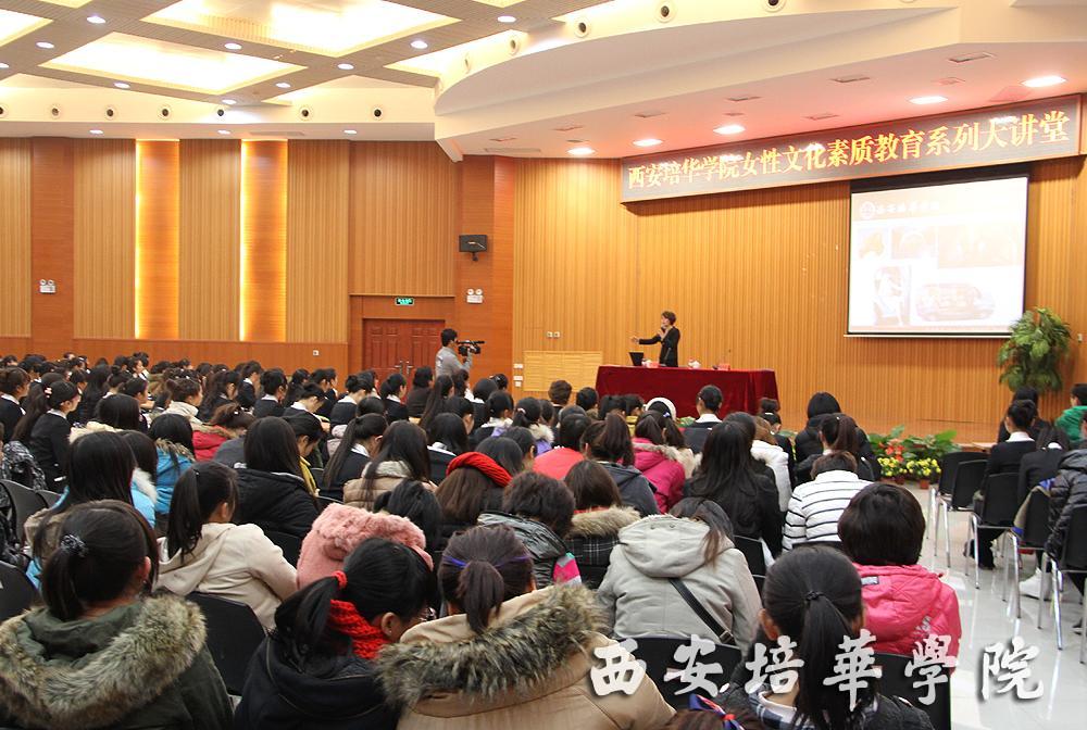 12月4日晚,我校2012—2013年度第一学期女性文化素质教育系列大讲堂第四场讲座——“你的礼仪价值无限”在明德楼四楼学术报告厅开讲。本次讲座由IPA国际注册高级礼仪培训师、陕西省礼仪协会会员、金牌礼仪讲师张小妮主讲,女子学院及医学院部分学生聆听了讲座。