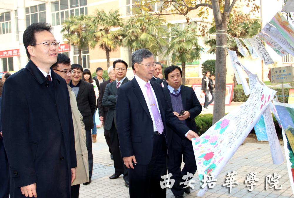 在我校姜波理事长等校领导的陪同下,代表团一行参观了我校长安校区校园环境、校区建设模拟沙盘、维之图书馆、校史馆及大学生艺术展厅,了解了我校长安校区发展规划及维之图书馆人性化的设计理念,听取了姜波理事长对我校历史沿革、师资建设、教学科研、红色文化、对外交流等方面的介绍。代表团一行对我校学生超强的动手能力和维之图书馆科学化的设计理念赞叹不已。一行人员还来到我校晓苑餐厅与学生共进午餐,对我校餐饮环境和服务产生浓厚兴趣并给予好评。