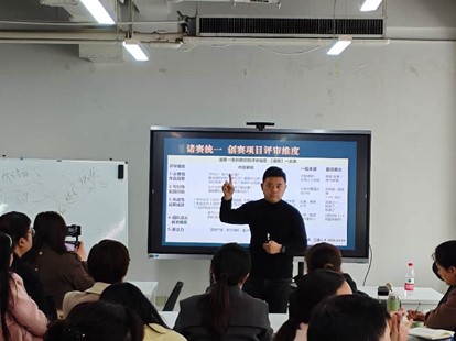 随后,创新创业教研室主任王楠紧扣前述核心内容,为全体教师带来“三位一体”实操行动指南:一是聚焦教师成长,提出从 “知识传授者” 向 “项目合伙人” 角色转变的师资培育新路径;二是深耕赛事指导,明确从项目挖掘到路演打磨的全周期精细化辅导策略;三是强化团队培育,分享跨学科组建学生梯队、激发学生内生动力的具体方法。王楠主任的分享兼具理论高度与落地抓手,为全校教师提升双创指导能力指明了清晰方向。