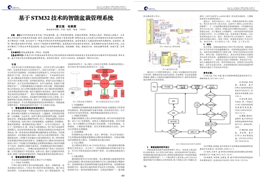 设计了一款可远程智能控制的植物自动浇水补光系统.该系统集土壤湿度检测,自动浇水以及蓄水箱自动供水于一体,设置了智能和手动两个部分进行浇水,均能实现湿度低于设定值自动浇水,光照较暗自动补光.基于上述的设计,可以解决生活中人们工作繁忙时无暇顾及室内盆栽的烦恼,提升了室内环境的舒适度,达到了舒适,绿色,智能的目的,并且本系统具有设计简单,性能优良,可靠性高,实用性强等特点。