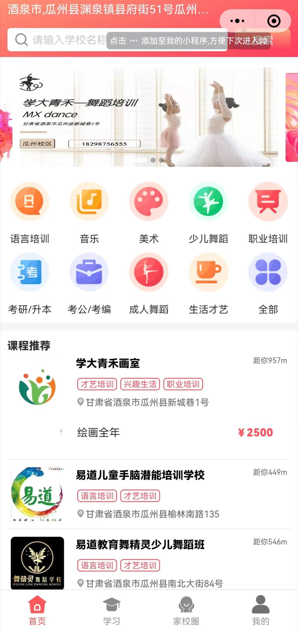 “i乐学”小程序是一款可提供周边艺术、运动类教培机构信息,集家长课程购买、机构课消管理为一体的综合性平台。根据用户位置,展示全面多样的非学科类教培机构信息,解决学生寻找机构的需求。