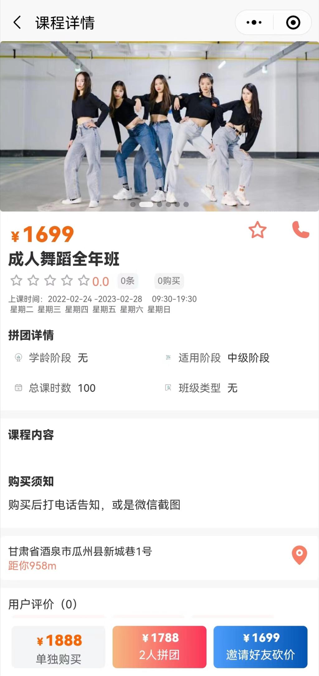 线下课程拼团和砍价、自动生成学校官网、教师上课点名签到功能,为机构招生和课消公正管理提供便捷服务。现已入驻机构达23家,注册用户达8000人,累计访问20000人次。