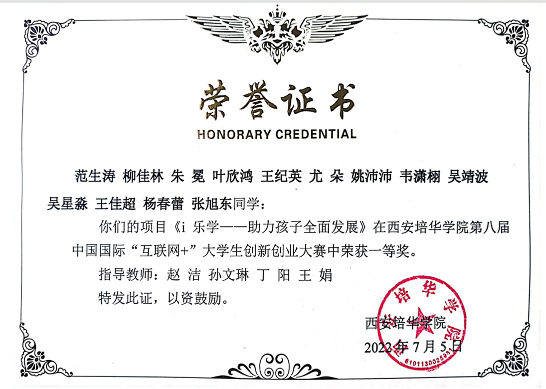 5.2022年7月荣获第八届中国国际“互联网+”大学生创新创业大赛校级一等奖;