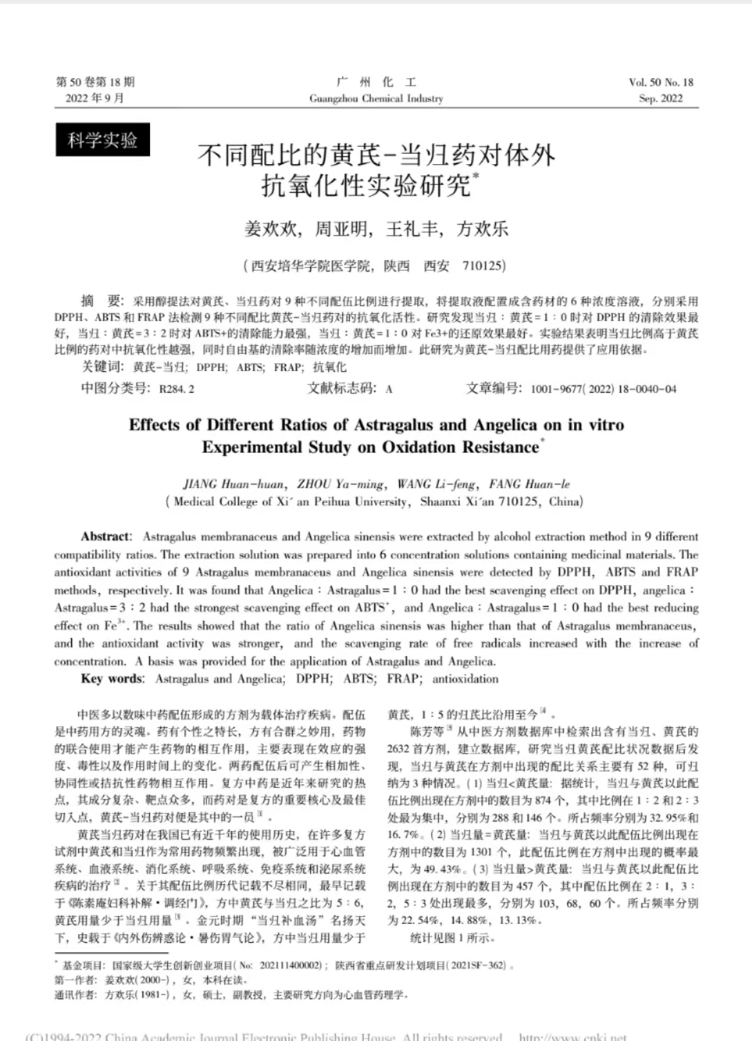 黄芪、当归作为补气生血的核心药对在临床治疗血虚证及类方中具有重要的配伍意义,本项目研究黄芪当归最佳配比改善动脉粥样硬化作用。通过观察黄芪当归药对不同比例提取物对Apo E基因敲除小鼠血脂及斑块的影响,分析黄芪当归抗AS的作用机制,从而寻找出其抗AS的物质基础,并为寻找黄芪当归的最佳有效配伍提供依据。此研究对其复方研究及提高临床治疗效果有着重要的意义。