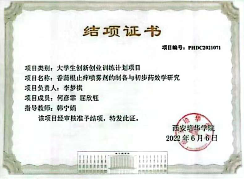 本课题以香蒲根为研究对象,提取其主要止痒成分将其制备成长效止痒且快速成膜的喷雾,并进行质量标准、稳定性并进行初步药效学研究,旨在开发新产品提供一定依据 。