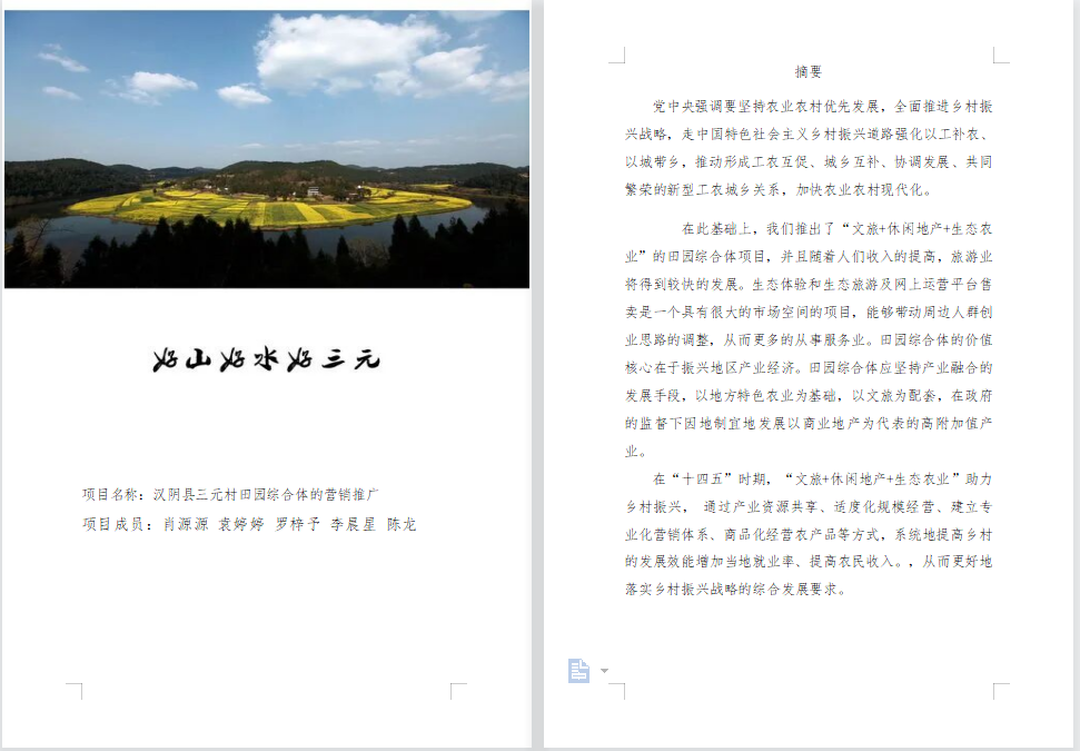 项目简介:本项目依托西安培华学院获批的陕西省社科联“社科助力县域高质量发展”活动重大项目和乡村振兴汉阴教学科研实践基地,项目团队成员结合汉阴县三元村生态环境、生态景观等生态优势,以及生态化乡村休闲民宿、乡村特色商业街、乡村MALL等商业设施,通过大数据技术、电子商务和新媒体平台打造田园综合体和商业配套板块的线上线下营销推广方案,为县域发展提供高品质的服务。