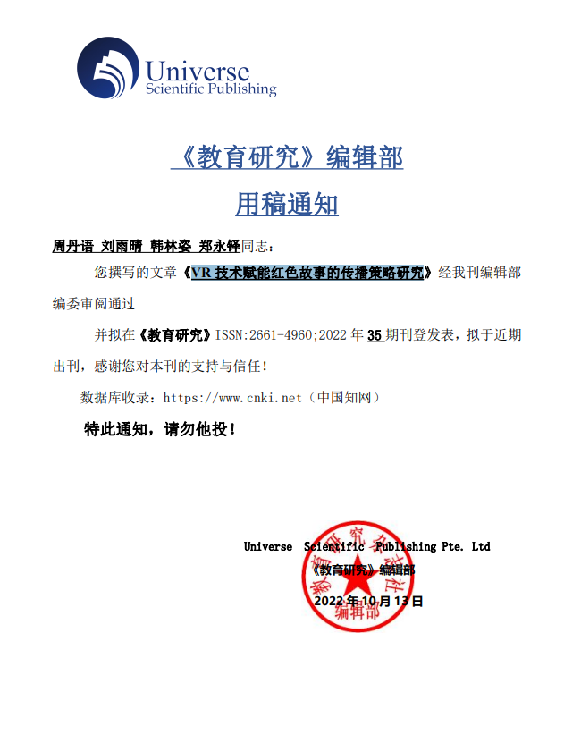 项目简介:本项目以VR技术赋能红色故事,以革命纪念馆为切入点,制作红色故事全景视频进行传播。技术上,研究“VR+红色故事”的技术实现路径,包括视频的拍摄、后期处理方式、易传播的发布形式,以及如何与VR头盔进行连接、观看、交互体验,从而产生更强烈的临场感。内容上,探索适合VR技术的红色故事选题类型,研究如何利用VR技术讲述深入人心的红色故事,主要包括红色故事的选题、叙事方式、表现手段等。