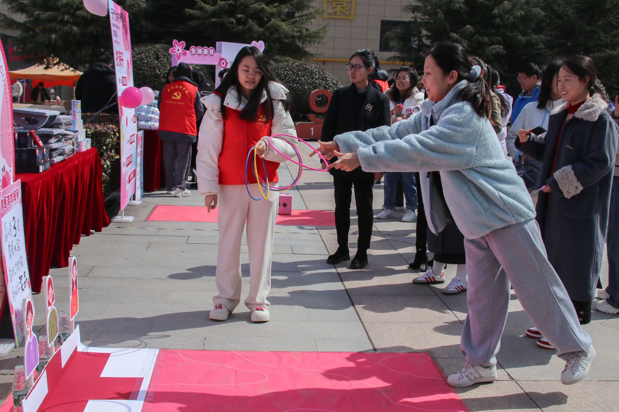 妇女节当天,校工会和校妇联在丰园餐厅西广场举办了“元气女神”游艺会。幸运骰子、投投乐、欢乐套圈等项目,吸引了众多女教职工踊跃参与。大家在游戏中开怀大笑、乐意融融,一颦一笑尽显新时代女性魅力风采。