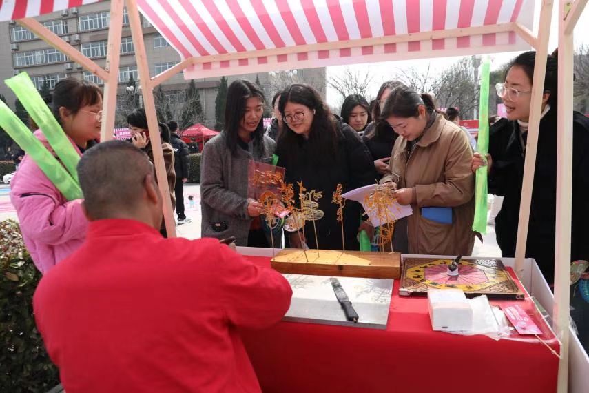 3月7日,“我们的美好时光”游艺会、培华女性教育展、性别平等基本国策宣传在丰园餐厅西广场拉开帷幕,陕西省教科文卫体工会主席徐富权,西安培华学院党委书记刘锋,党委副书记、副校长姚文静,副校长罗新远,校工会主席陈玲与女教职工们一起,共同了解发展中的女性力量,在怀旧游艺与非遗文化中回味儿时快乐。