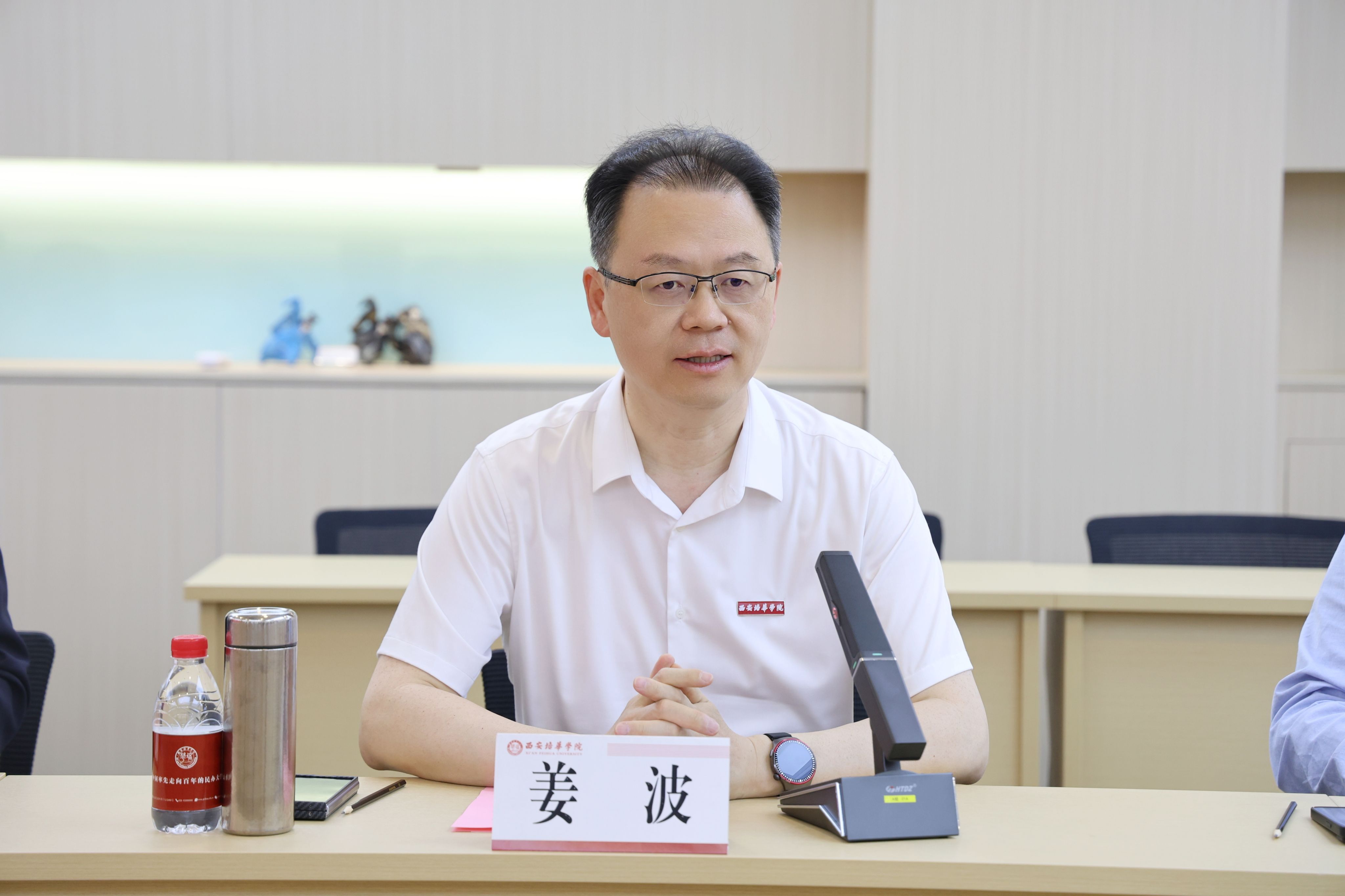 理事长姜波致欢迎词,对陕西省工程师学会一行的到来表示热烈欢迎,并介绍了学院的发展历程、办学特色及未来规划。教务管理中心副主任王琳汇报学校专业建设与校企合作成果。