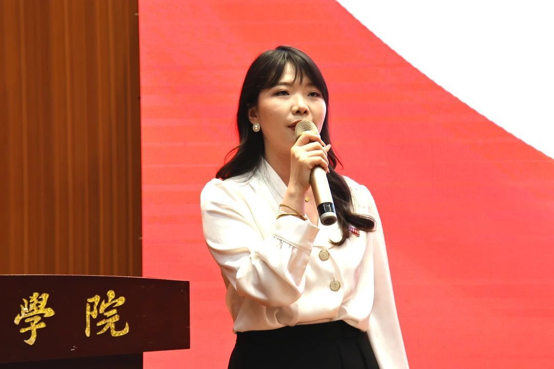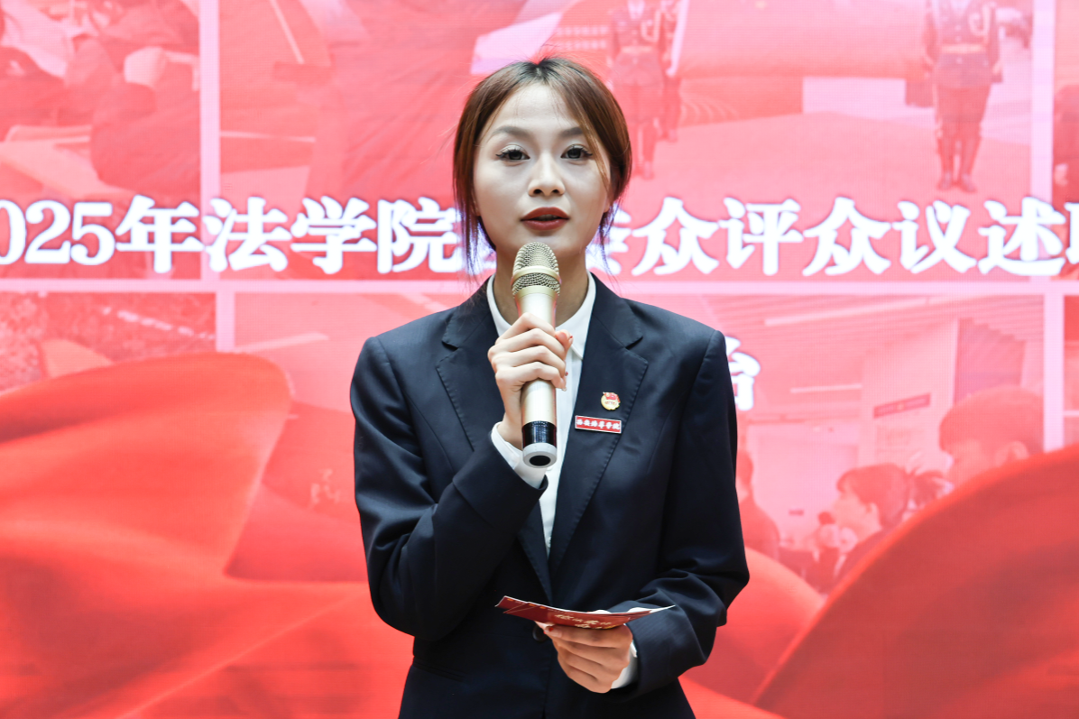 述职汇报得分由考核工作领导小组打分、二级学院团委书记互评、大众评审代表评议、网络线上评议投票四部分组成。马克思主义学院副院长、党支部书记寇军强代表考核领导组评委点评,法学院党总支书记兼行政副院长韩斌作为二级学院党委书记代表发言,人文与国际教育学院日语专业学生代表舒蕊代表团员青年评议发言。