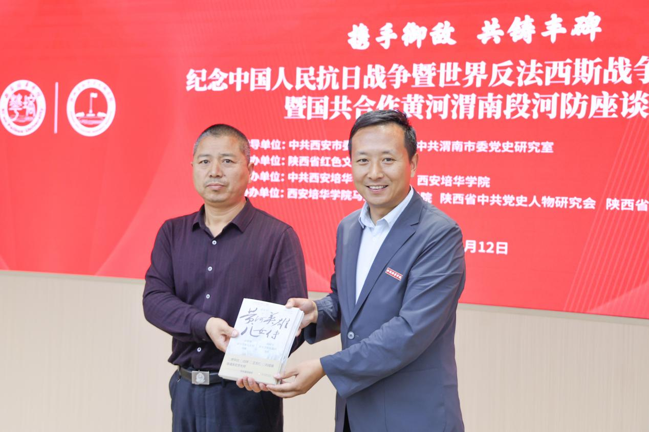 5月12日,“携手御敌 共铸丰碑:纪念中国人民抗日战争暨世界反法西斯战争胜利80周年暨国共合作黄河渭南段河防”座谈会在西安培华学院明德楼召开。会议由中共西安市委党史研究室、中共渭南市委党史研究室指导,陕西省红色文化研究院主办,西安培华学院党委承办,旨在铭记国共合作抗战历史,弘扬爱国主义精神。