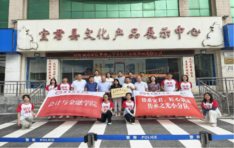 “情系宜君,匠心筑遗”—传承之光实践队由会计与金融学院副院长丁阳院长、团委书记寇方译老师带领8名学生荣获“财经报国青年力行”财经专项团中央立项,实践队伍前往陕西省铜川市宜君县文化馆进行11天实践活动,开展了以“非遗”“反诈宣传”为主题的活动。通过实地调研、走访手艺人之家,了解宜君剪纸对当地人经济文化生活的影响。