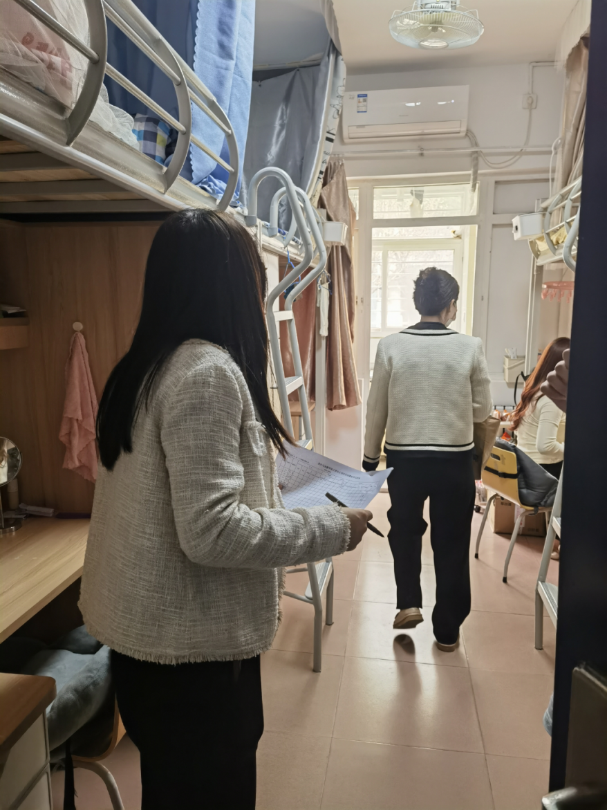 此次检查主要从寝室安全、卫生、整洁度、文化文明四个方面进行考量,旨在排除学生宿舍安全隐患,指导学生清理卫生死角,提高学生归纳整理能力以及文明素养。