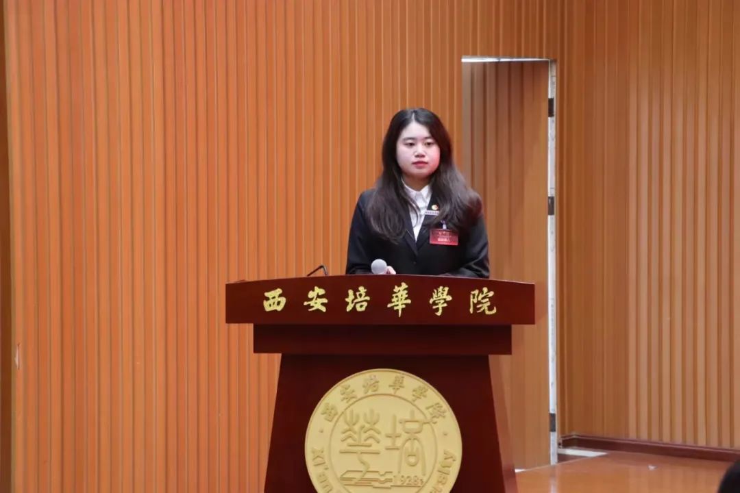 第三项:西安培华学院校学生会主席团代表黄菁致辞