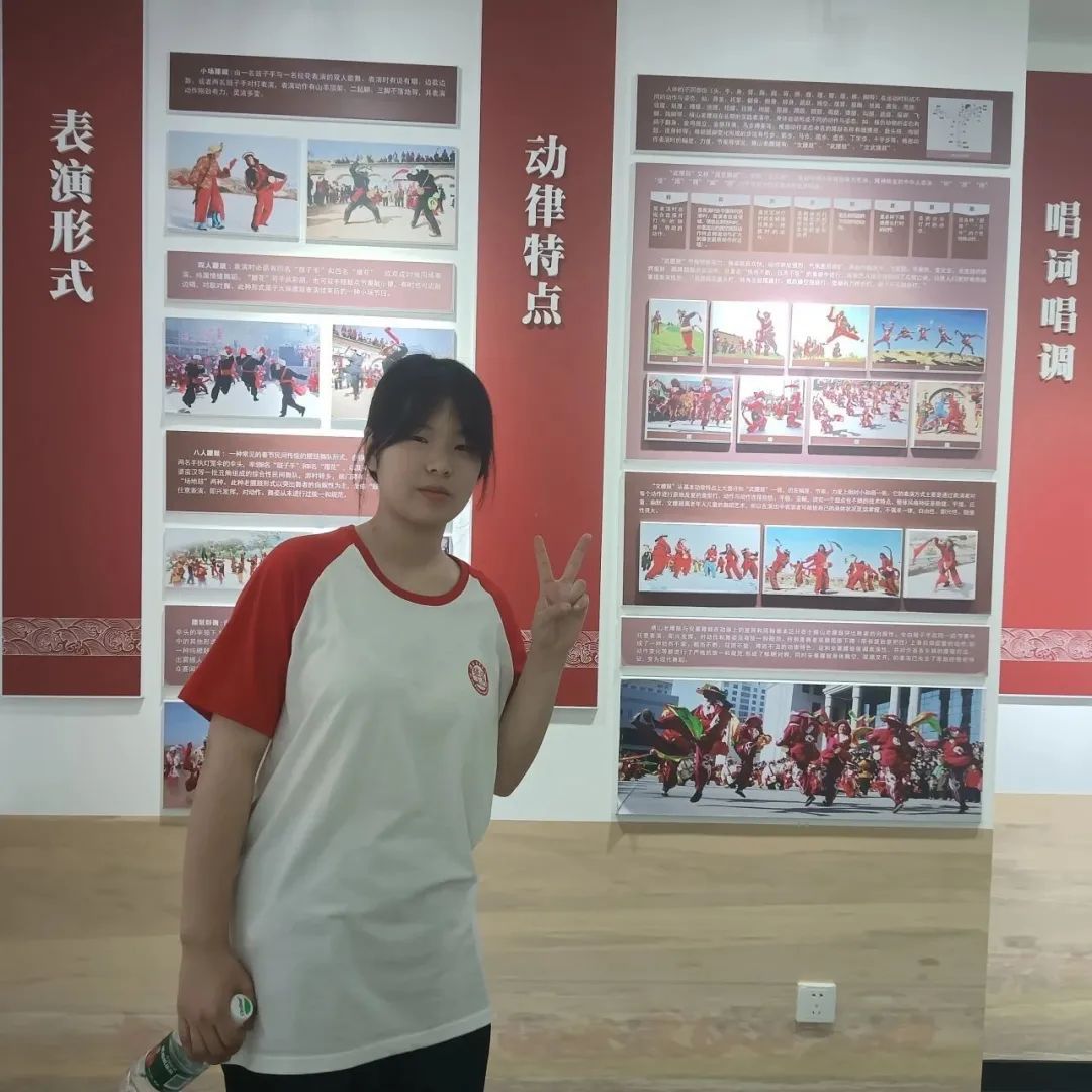从传统的羊皮鼓到现代改良的合成材料鼓,仿佛在诉说着岁月的故事。沿着展厅的通道前行,同学们看到了一幅幅生动的图片和详实的文字介绍,详细讲述了腰鼓的起源、发展以及在不同历史时期所扮演的角色。馆内陈列许多珍贵的历史文物,如古代腰鼓艺人使用过的鼓槌、服饰以及乐谱等。